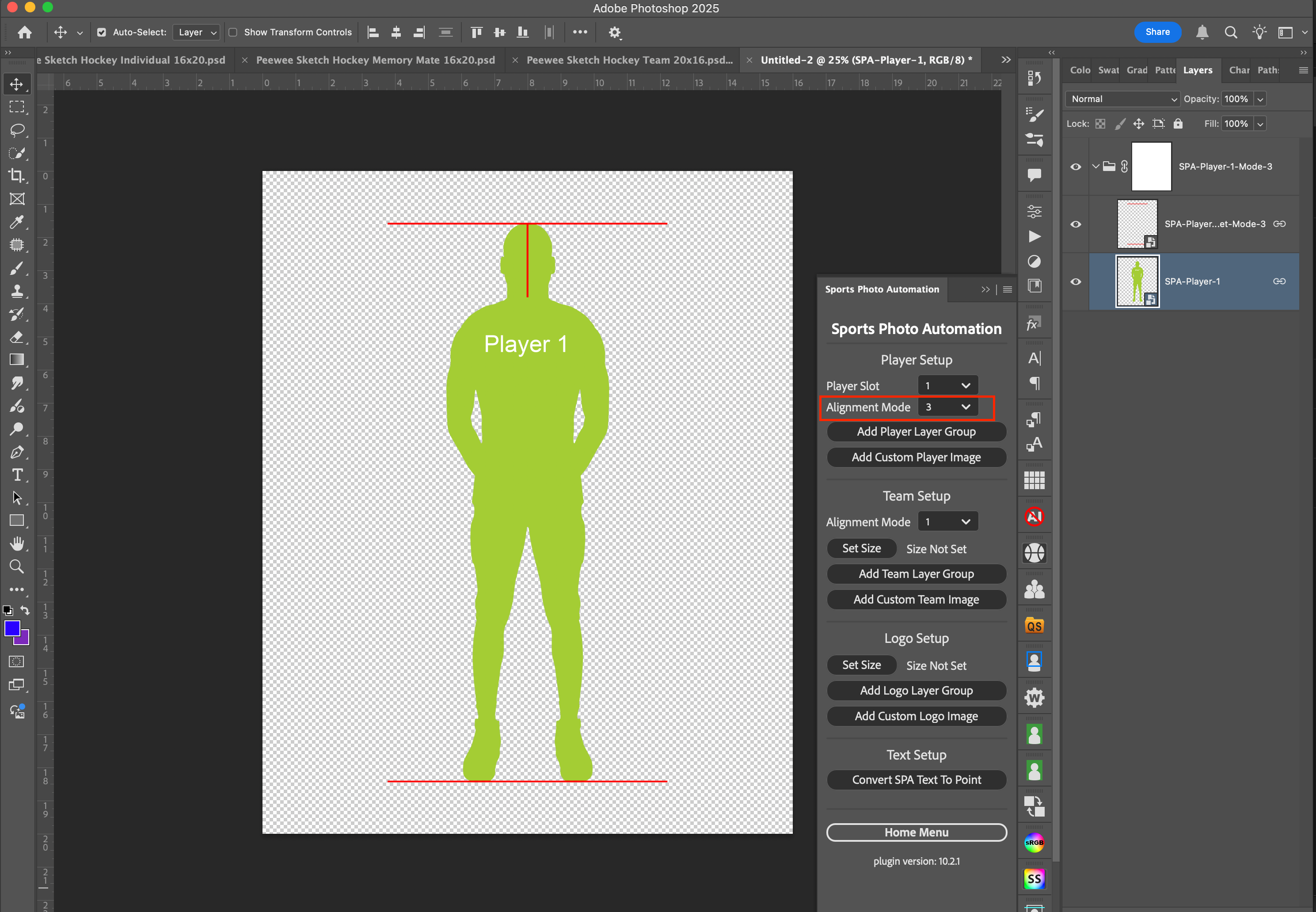 Another important thing is that SPA will only align the subject to the red lines in your template. It doesn’t care if there’s empty space where your original image doesn’t fill the template. So if you want a specific solid color, then you’ll need to put a solid fill color layer below the player setup layers.
