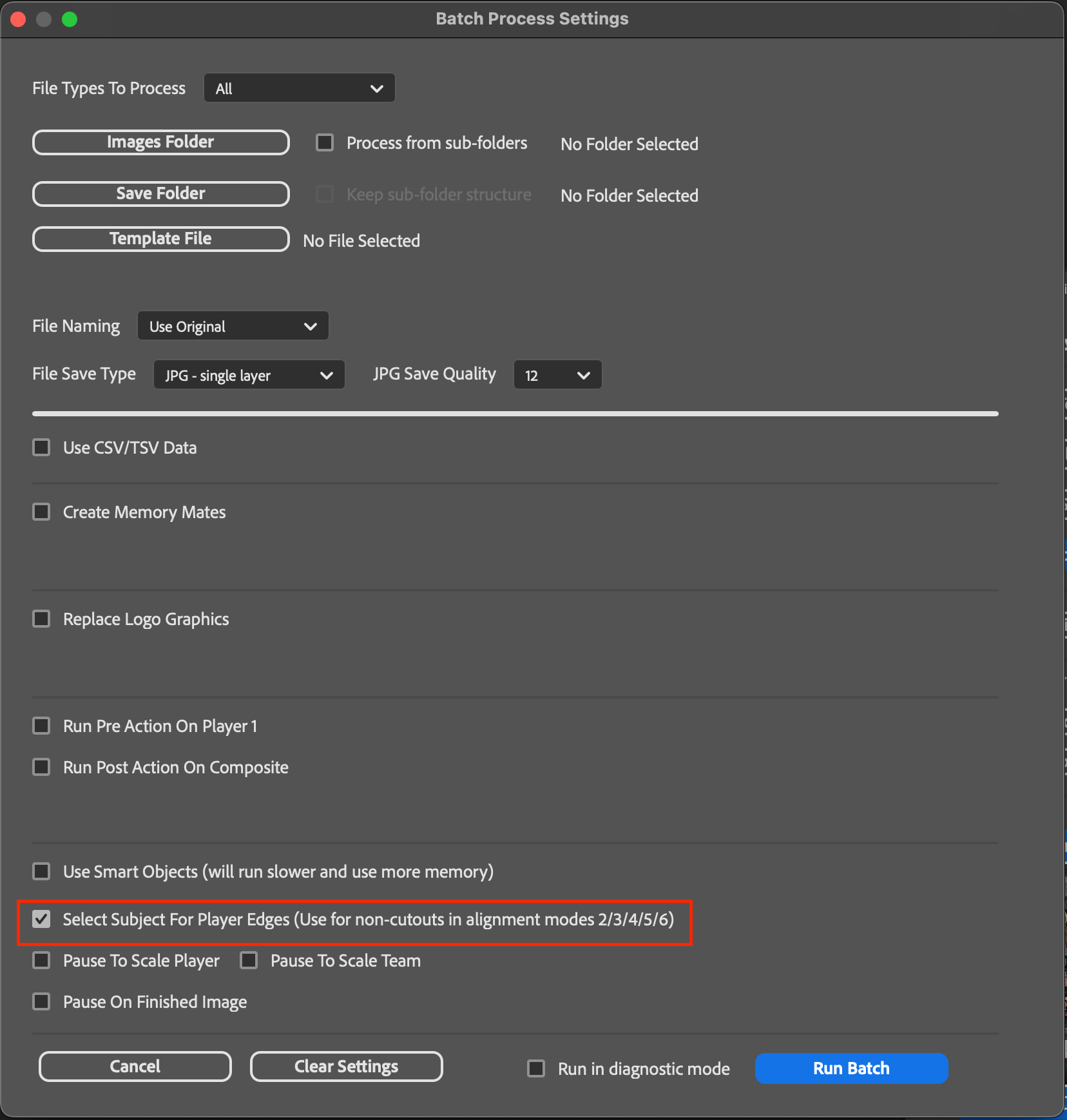 Important: When you batch, check the “use select subject” checkout. If not, it will detect the bottom of the transparency as the bottom of the subject. For non-cutouts, you’ll need to use this.