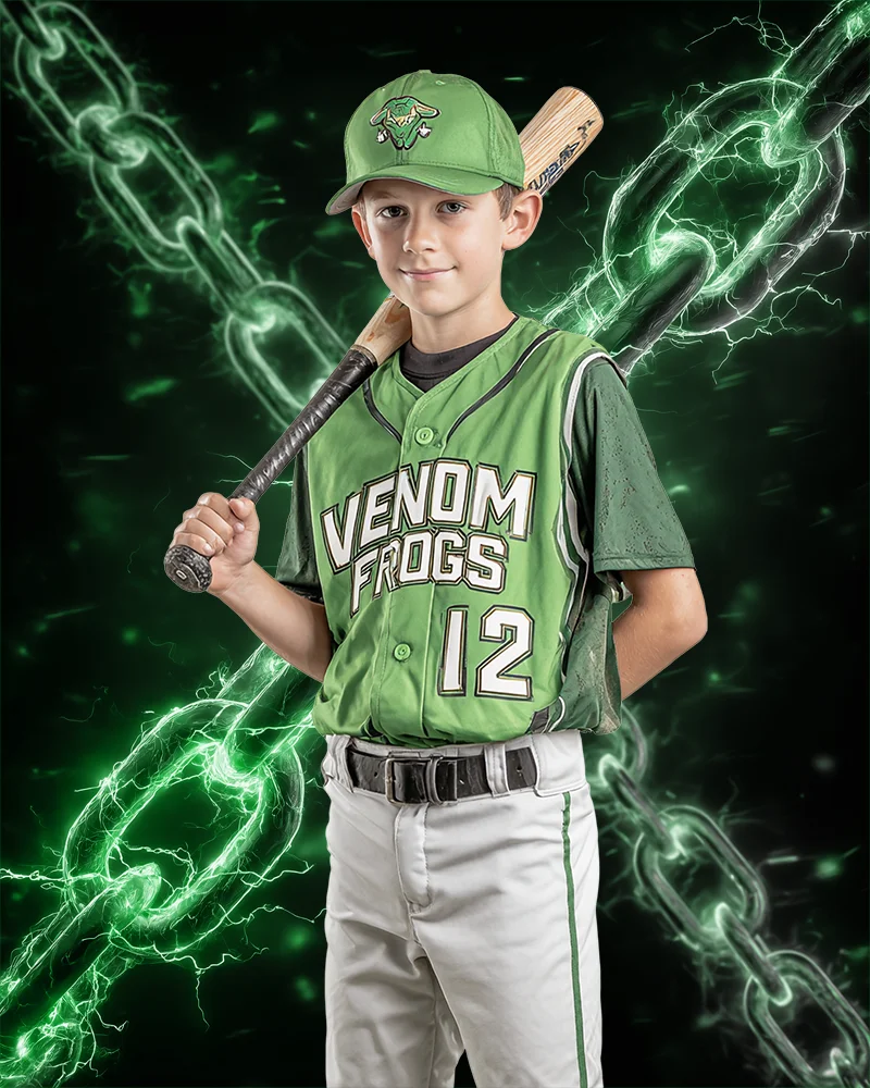 Chain Link Lightning captures raw strength and electric intensity in a striking digital background. Featuring glowing blue chain links charged with lightning energy, this design radiates power and motion — perfect for sports composites, strength-themed portraits, or futuristic character concepts. The metallic glow and electric arcs create a bold, modern edge.
