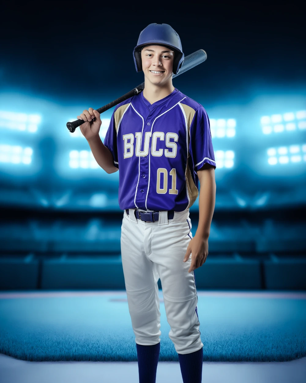 The shallow depth of field creates a powerful separation between subject and background, making athletes stand out with a clean, professional finish. The smooth gradient lighting and balanced composition leave plenty of room for full-body poses, trading card layouts, banners, and social graphics.