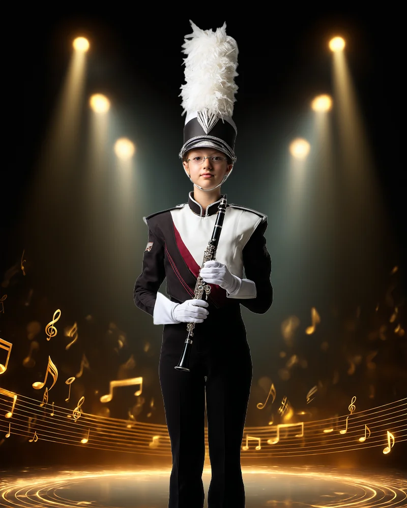 Step into the spotlight with Gold Notes Stage, a digital background for photography. This glowing backdrop features radiant golden music notes floating across illuminated staff lines, framed by dramatic stage spotlights and swirling light rings. Perfect for band, choir, orchestra, or music-themed composites, it creates a powerful, performance-ready atmosphere that makes every subject shine center stage.