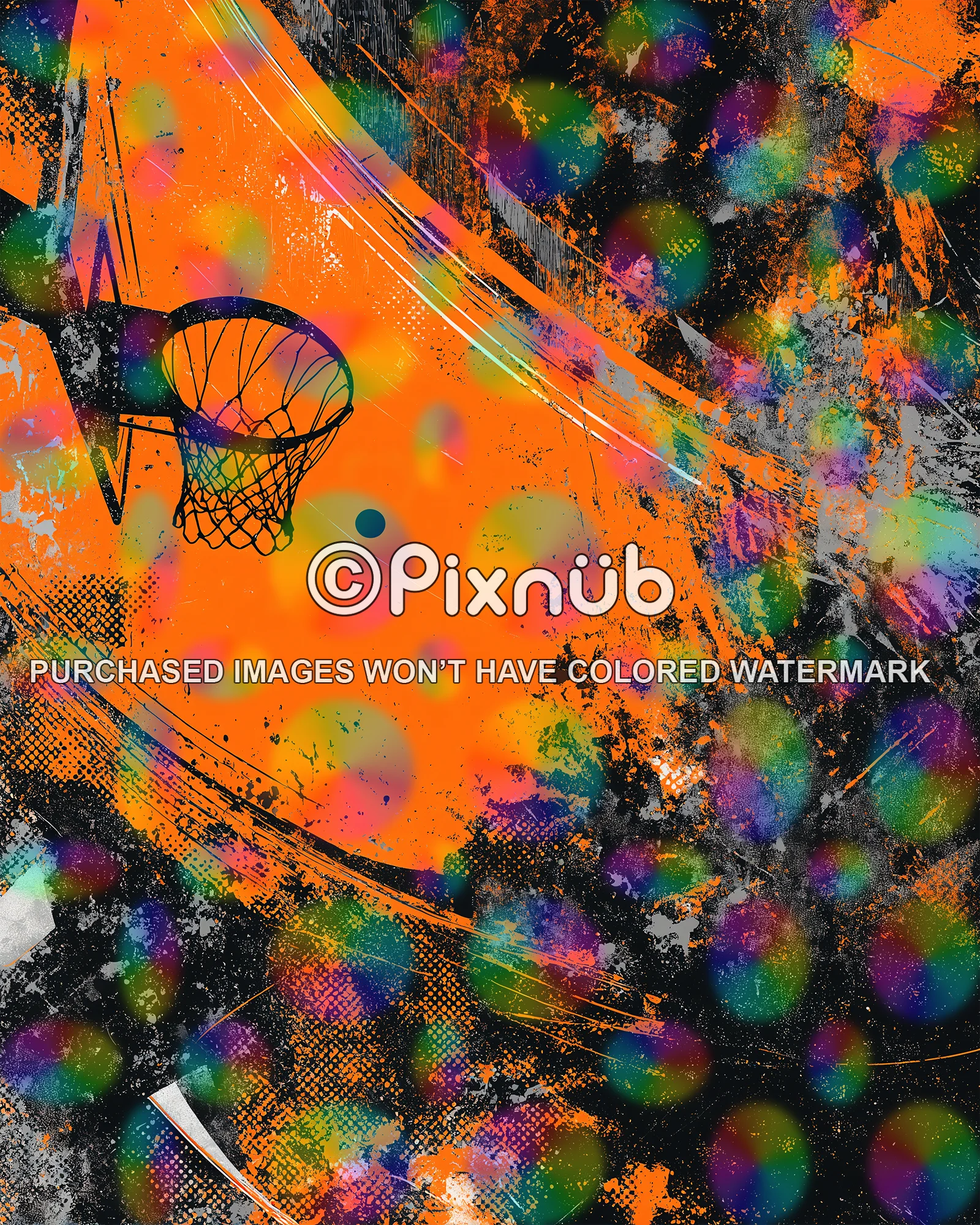 Grunge Paint Basketball explodes with raw basketball energy through a gritty blend of orange, black, and gray textures. The stylized hoop and splatter design capture the chaos and excitement of the game, creating a dynamic digital background that feels both urban and artistic. Perfect for basketball composites, poster art, or modern sports graphics where attitude and texture drive the design.