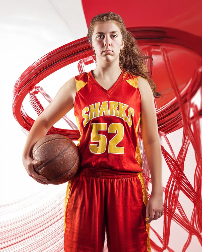 This digital backgrounds are color adjustable, making it easy to match team colors while preserving the sketch texture and high-contrast style. The rim and motion lines naturally frame the subject, making it ideal for basketball portraits, senior banners, posters, and standout social media graphics.