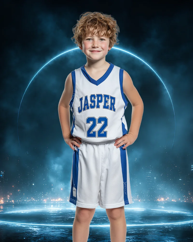 This color adjustable digital background, Light Rings, surrounds your athlete with glowing circular energy, rising mist, and subtle city-light sparkles. A clean, futuristic atmosphere makes it perfect for basketball, soccer, and multi-sport portraits that need a bright, modern highlight effect.