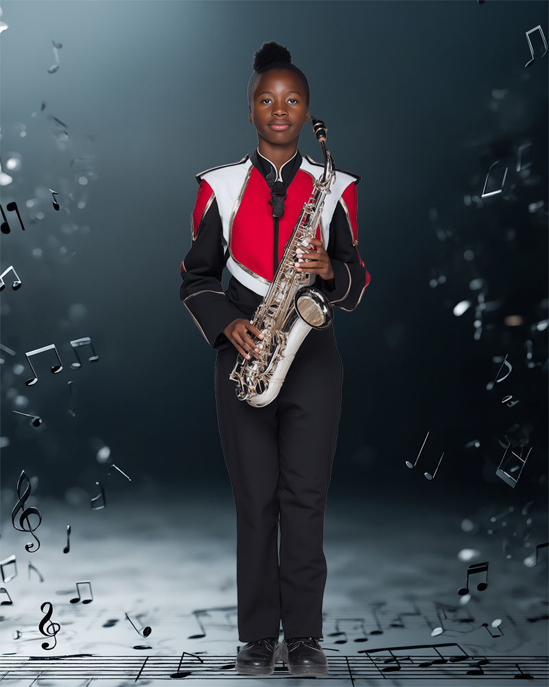 Bring your school band composites to life with Melody Drift, a digital background for photography that features floating musical notes drifting across a dark, moody atmosphere. The reflective floor and scattered staff lines create a clean, minimalistic stage-like design while maintaining a modern, professional style. Perfect for marching band, choir, and orchestra portraits, this background combines elegance with creativity to highlight your subject in a striking way.