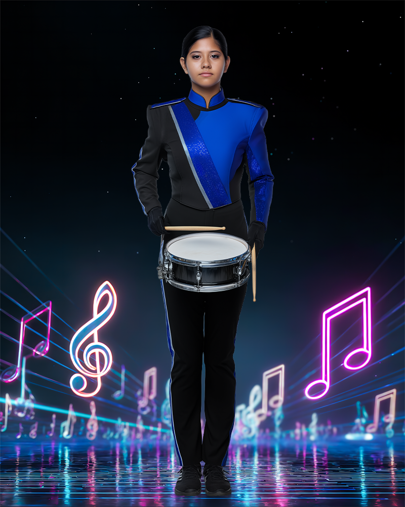 Turn up the energy with Neon Notes, a vibrant digital background glowing with oversized neon music symbols floating in a futuristic space. Brilliant treble clefs and notes shine in pink, blue, and purple, reflecting across a sleek floor under a starry sky. Perfect for band portraits, choir composites, dance, or music-themed designs, this backdrop delivers a bold, modern concert vibe where your subject becomes the star of the show.