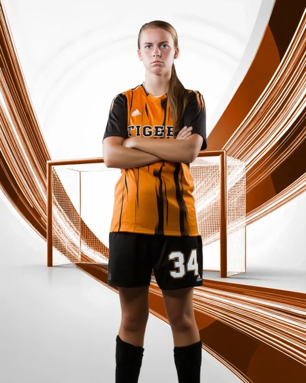 This digital background is color adjustable, making it easy to match team colors while preserving the sketch texture and high-contrast style and ideal for soccer portraits, banners, posters, and media graphics where you want a creative edge without losing a professional feel. The goal structure provides strong framing, while the sketch elements add movement and visual interest without overpowering the subject.