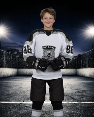 Street Hockey Night Rink is a high-impact street hockey digital background designed for dramatic night-time composites. Featuring a cracked asphalt playing surface, white boards, chain-link fencing, and powerful stadium-style lights against a dark urban skyline, this digital background delivers a bold, cinematic street hockey atmosphere. The centered perspective and controlled lighting make it ideal for youth and competitive player portraits, allowing athletes to stand out cleanly while maintaining a realistic outdoor night-rink environment.