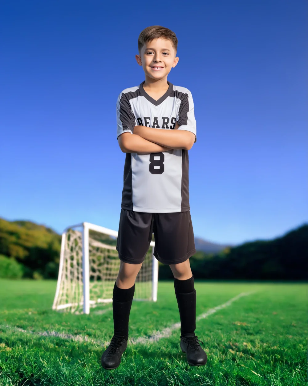 This digital background is ideal for soccer portraits, youth league graphics, training posters, and promotional designs that call for a natural daytime atmosphere. The bright lighting and minimal distractions make it easy to composite athletes while maintaining a polished, professional appearance suitable for both casual and competitive sports visuals.
