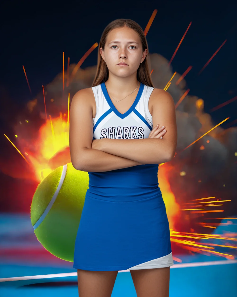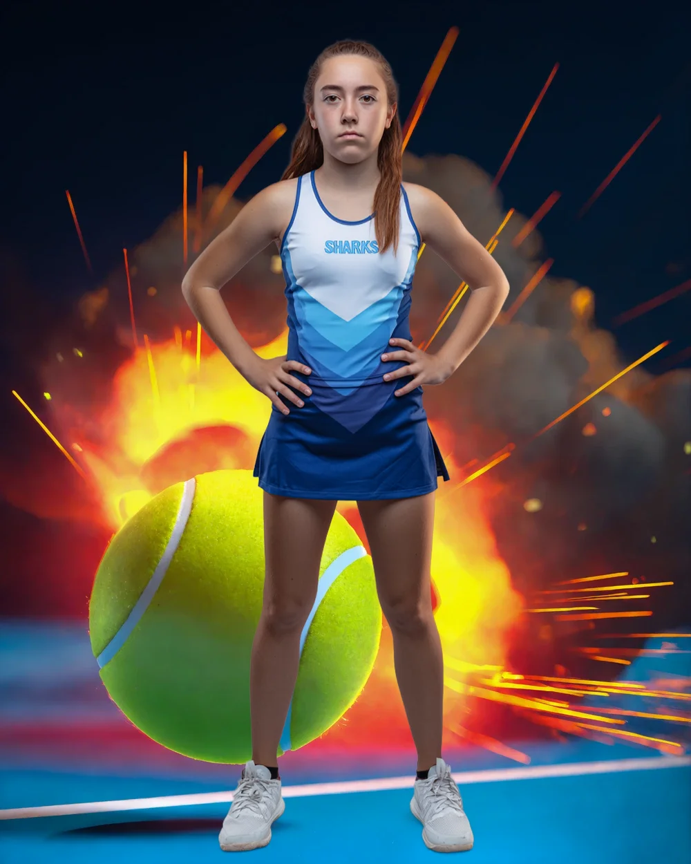 Tennis Ball Explosions is a high-energy digital background designed to bring explosive power and confidence to tennis portraits. Featuring a blazing tennis ball erupting behind the athlete, this scene creates a bold sense of motion and intensity while keeping the player sharply defined as the focal point.