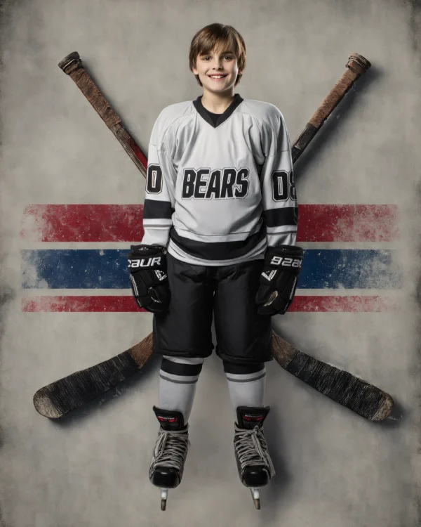 Bring timeless grit and heritage into your composites with Vintage Hockey, a classic digital background inspired by the roots of the game. Featuring crossed weathered sticks over distressed red and blue rink striping, this design captures the raw, old-school spirit of hockey.